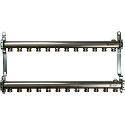 Коллекторная группа из нержавеющей стали для радиаторной разводки без расходомеров на 12 выходов STOUT