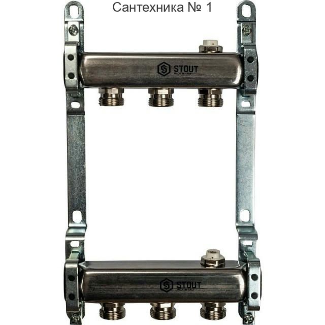 Коллекторная группа из нержавеющей стали для радиаторной разводки без расходомеров на 3 выхода STOUT