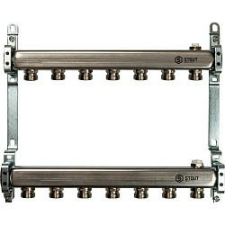 Коллекторная группа из нержавеющей стали для радиаторной разводки без расходомеров на 7 выходов STOUT