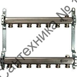 Коллектор из нержавеющей стали для радиаторной разводки STOUT 7 выхода SMS 0923 000007 представляет собой элемент для подачи и распределения теплоносителя в системах радиаторного отопления и теплого пола. Изделие комплектуется двумя коллекторами (подающий и обратный), штуцерами под фитинги, краном спуска воздуха, а также кронштейнами для фиксации конструкции к стене.