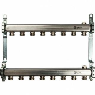 Коллекторная группа из нержавеющей стали для радиаторной разводки без расходомеров на 8 выходов STOUT