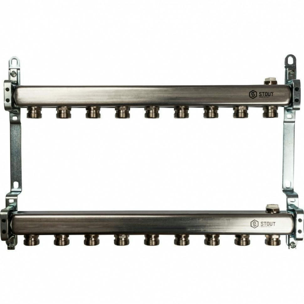Оцените товар «Коллекторная группа из нержавеющей стали для радиаторной разводки без расходомеров на 9 выходов STOUT»
