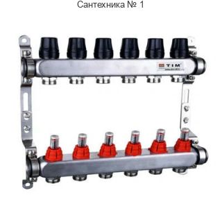 Коллекторная группа из нержавеющей стали с расходомерами 1" на 12 выходов 3/4" TIM