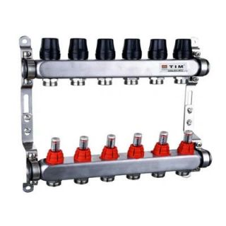Коллекторная группа из нержавеющей стали с расходомерами 1" на 6 выходов 3/4" TIM
