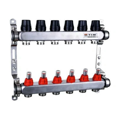 Коллекторный блок служит для распределения потоков по контурам теплового пола, где в качестве теплоносителя используется вода либо незамерзающие растворы гликоля.