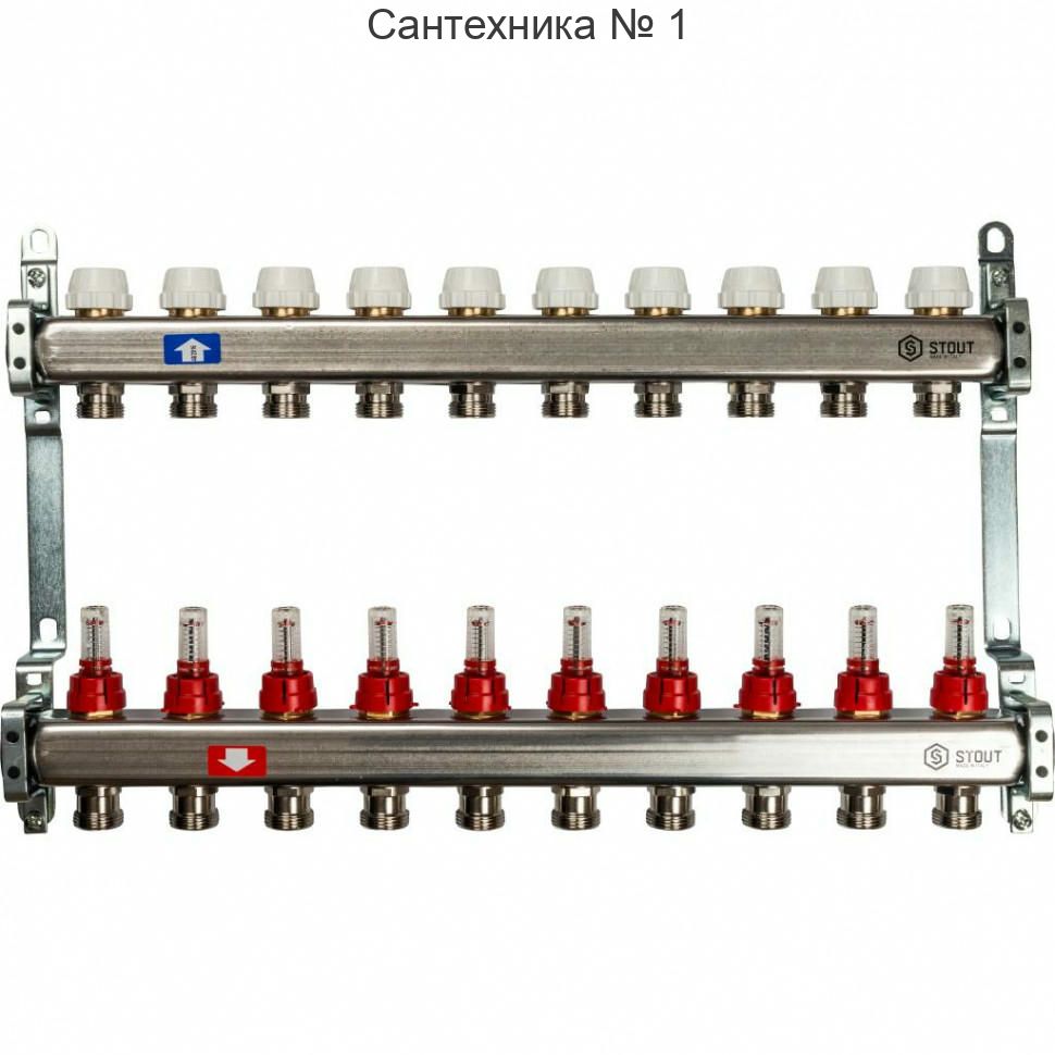 Коллекторная группа из нержавеющей стали с расходомерами на 10 выходов STOUT
