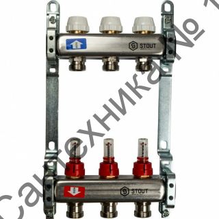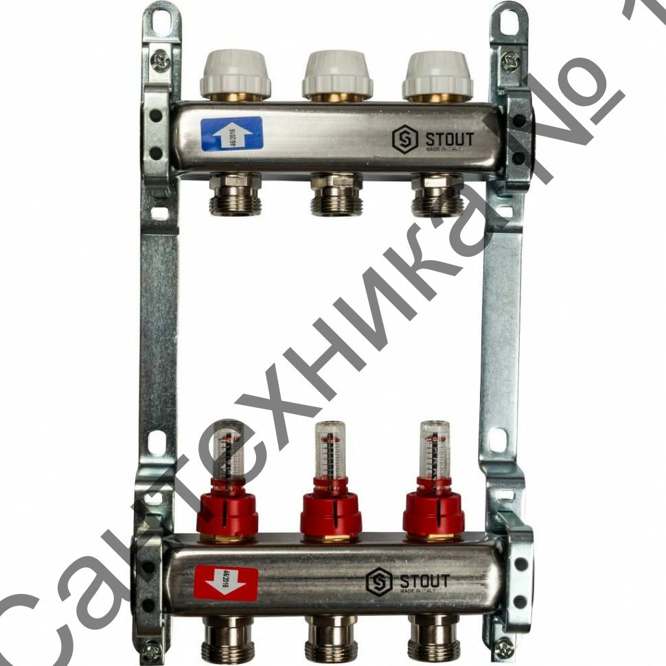 Коллекторная группа из нержавеющей стали с расходомерами на 3 выхода STOUT