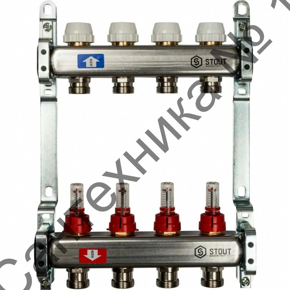 Коллекторная группа из нержавеющей стали с расходомерами на 4 выхода STOUT