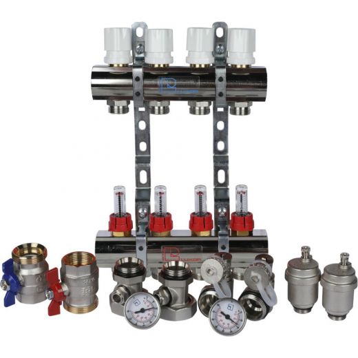 Коллекторная группа с расходомерами 1" на 4 выхода 3/4 ЕК Luxor CD 473M