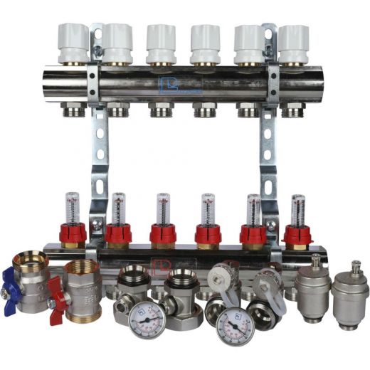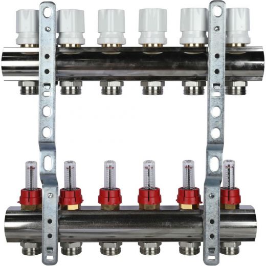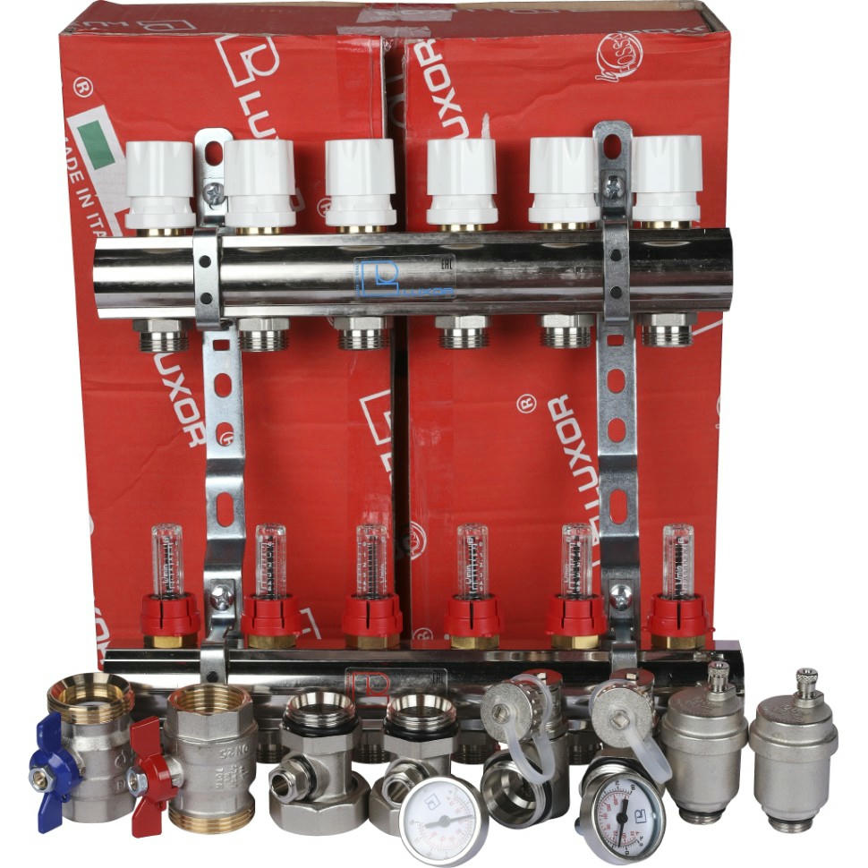 Коллекторная группа с расходомерами 1" на 6 выходов 3/4 ЕК Luxor CD 473M