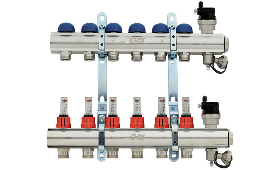 Коллекторная группа с расходомерами 1" на 7 выходов 3/4 EK FIV