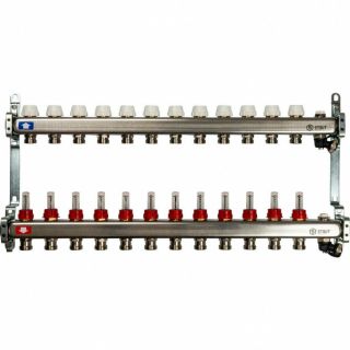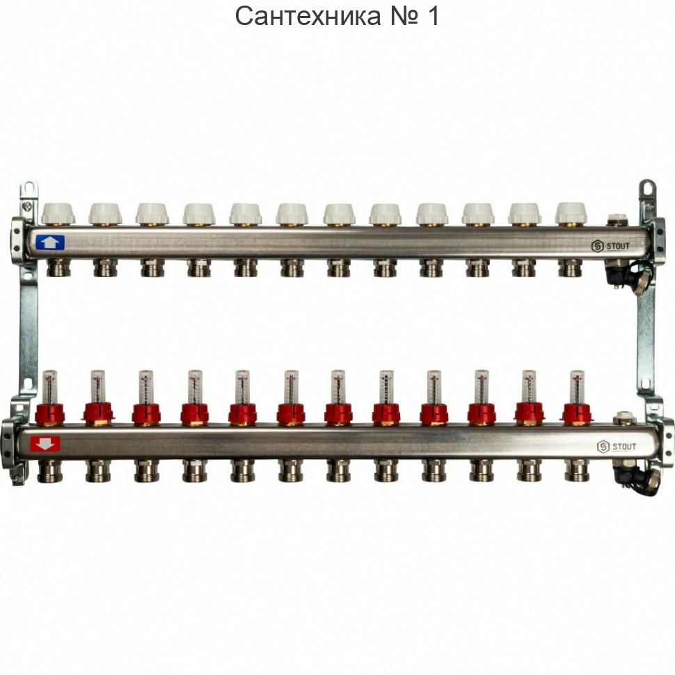 Коллекторная группа с запорными кранами из нержавеющей стали с расходомерами на 12 выходов STOUT