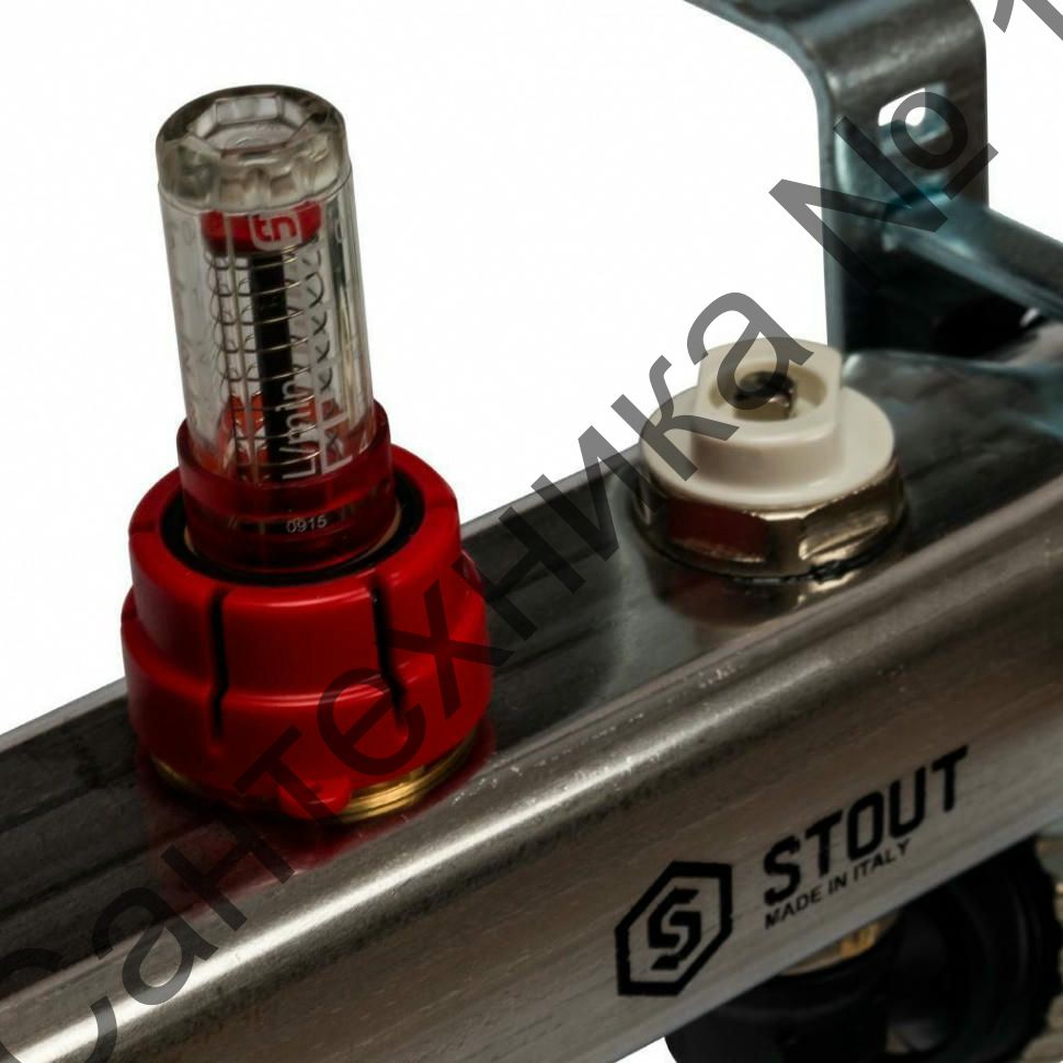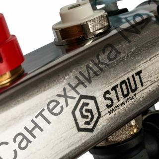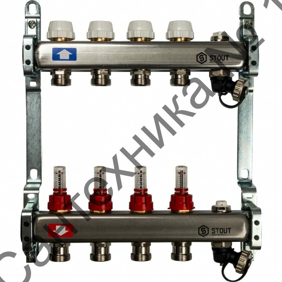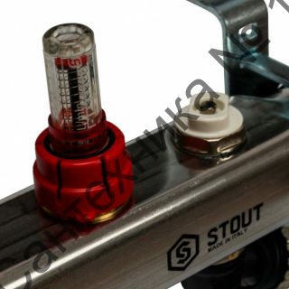 Коллекторная группа с запорными кранами из нержавеющей стали с расходомерами на 4 выхода STOUT
