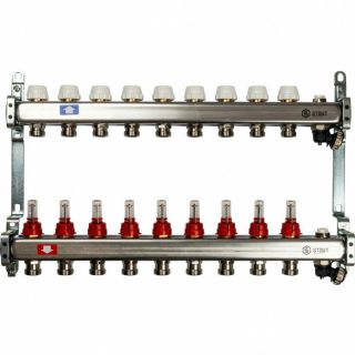 Коллекторная группа с запорными кранами из нержавеющей стали с расходомерами на 9 выходов STOUT