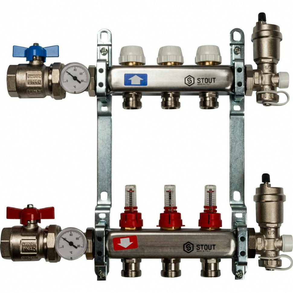 Коллекторная группа в сборе из нержавеющей стали с расходомерами на 3 выхода STOUT