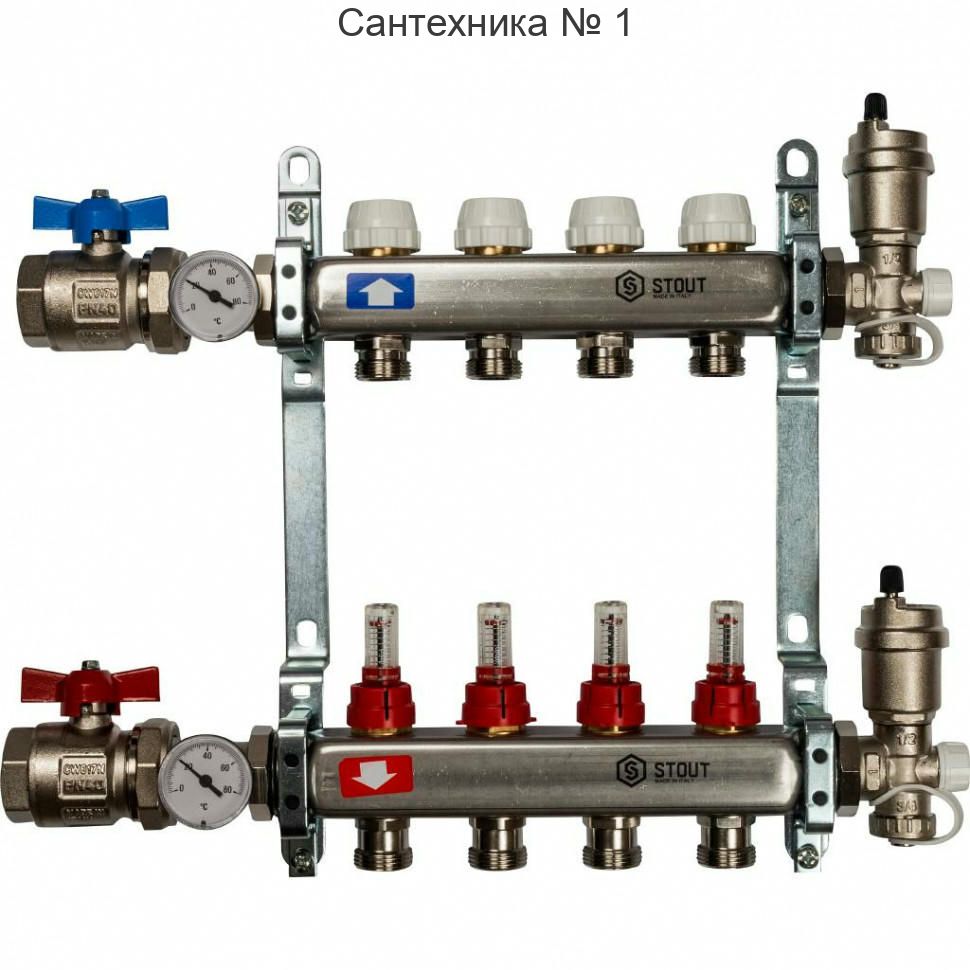 Коллекторная группа в сборе из нержавеющей стали с расходомерами на 4 выхода STOUT