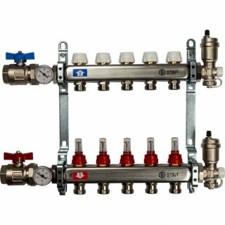 Коллекторная группа в сборе из нержавеющей стали с расходомерами на 5 выходов STOUT
