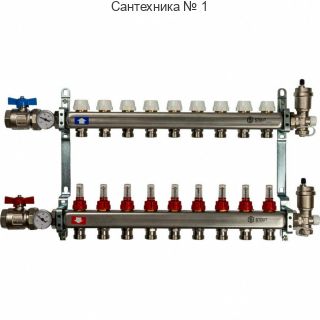 Коллекторная группа в сборе из нержавеющей стали с расходомерами на 9 выходов STOUT