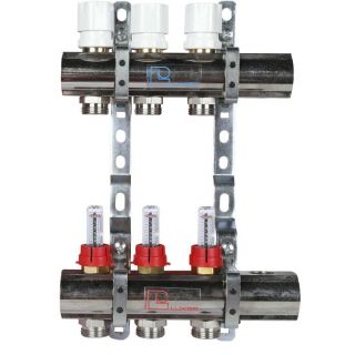 Коллекторная группа в сборе с расходомерами 1" на 3 выхода 3/4 ЕК Luxor CD 477