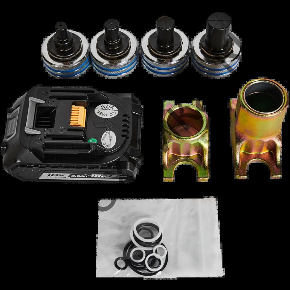 Аксиальный аккумуляторный пресс-инструмент ROMMER предназначен для расширения труб из сшитого полиэтилена (в том числе многослойных) и их соединения с аксиальными фитингами и надвижной гильзой. Чтобы обеспечить качественное расширение, экспандер комплектуется сменными насадками разных диаметров, строго соответствующих диаметрам труб. Аккумуляторный пресс-инструмент ROMMER питается от литий-ионного аккумулятора (18 В), приводится в действие двигателем и управляется микроконтроллером. Благодаря гидравлической системе высокого давления, этот инструмент идеально подходит для создания надежных пресс-соединений при монтаже трубопроводных систем из сшитого полиэтилена различного назначения.