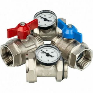 Комплект прямых шаровых кранов с термометрами 1 STOUT
