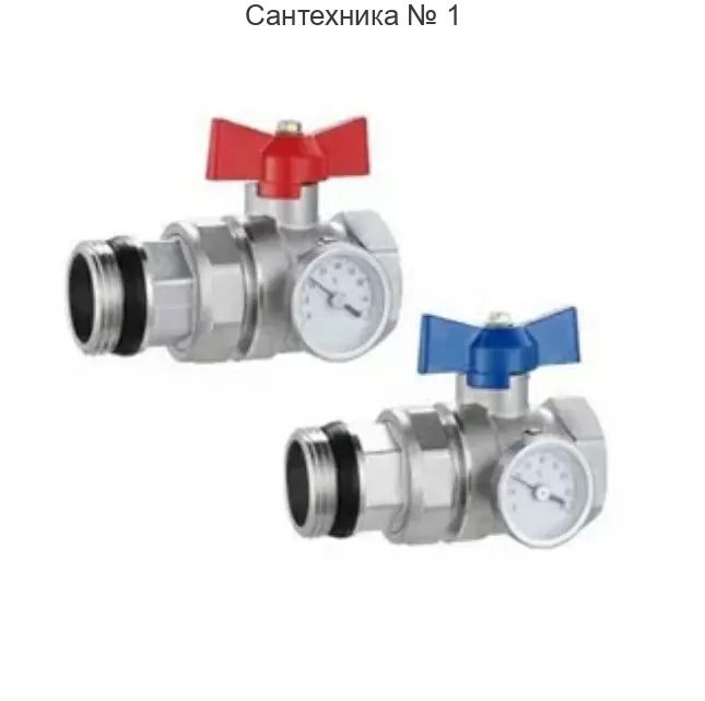 Комплект прямых шаровых кранов с термометрами Rommer 1*