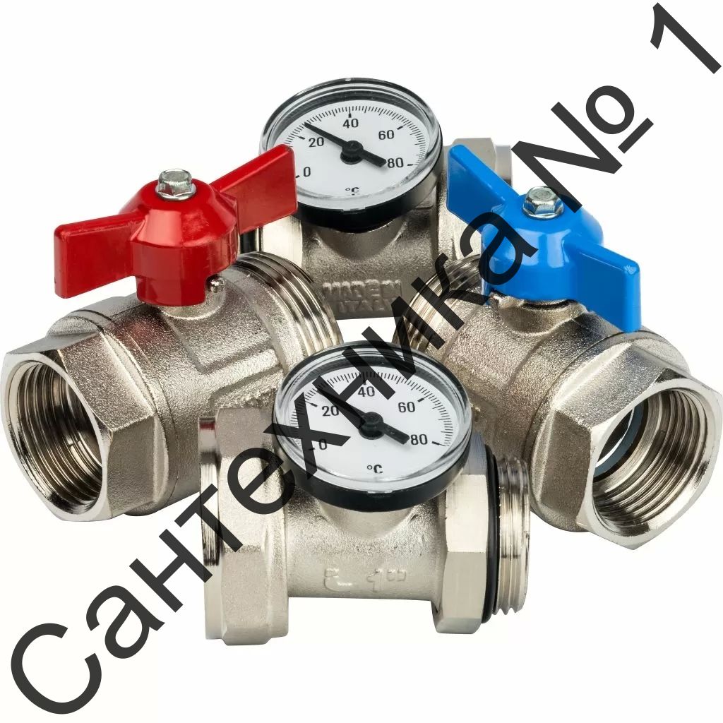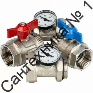 Комплект прямых шаровых кранов с термометрами Stout (2 шаровых крана, 2 вставки с термометрами)