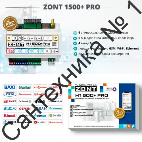 Универсальный контроллер ZONT H1500+ PRO обладает широким функционалом и подходит для контроля и управления сложными системами отопления. Прибор является современной версией контроллера ZONT H1000+ и соответствует профессиональным стандартам ZONT. Контроллер ZONT Н1500+ PRO предназначен для профессиональной автоматизации инженерных систем и дистанционного управления ими. Контролирует и управляет системой отопления с функцией приготовления горячей воды. Прибор обладает возможностями гибкого программирования для решения задач автоматизации котельной. Алгоритм работы контроллера может учитывать температуру наружного воздуха и недельное расписание.
