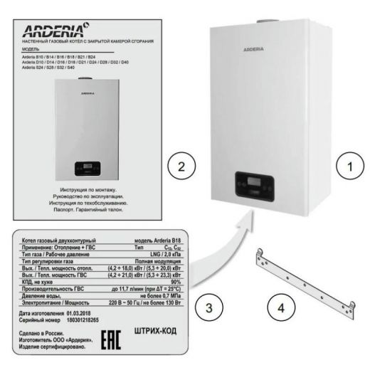 Оцените товар «Котел газовый Arderia D24 24 кВт Atmo, двухконтурный с открытой камерой сгорания, настенный»