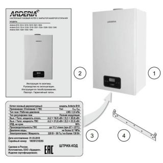 Котел газовый Arderia D40 40 кВт Atmo, двухконтурный с открытой камерой сгорания, настенный