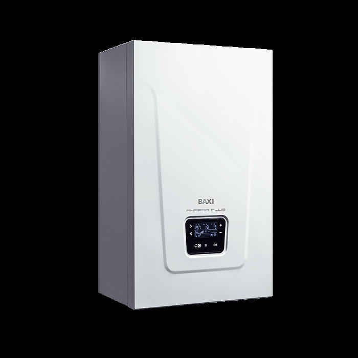 Электрический котел BAXI AMPERA Plus ? это современная мини-котельная, которая включает: расширительный бак, насос и группу безопасности. Модельный ряд начинается с котлов мощностью 6 и 9 кВт, они могу быть как однофазными, так и трехфазными. Модели от 12 до 36 кВт поставляются в трёхфазном исполнении. Одним из ключевых усовершенствований в новых моделях является улучшенная модуляция мощности. Количество ступеней модуляции BAXI AMPERA Plus зависит от мощности котла. Модели мощностью 6 кВт имеют 3 ступени, модели от 9 до 24 кВт - 6 ступеней, а модели от 30 до 36 кВт - 9 ступеней. Это позволяет более точно регулировать мощность котла в соответствии с потребностями, что обеспечивает экономию энергопотребления и повышает комфорт и безопасность. AMPERA Plus оснащен разъемом OpenTherm и дин-рейкой внутри котла для быстрой и удобной установки системы удаленного управления BAXI Connect+.