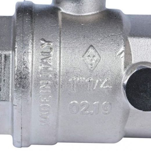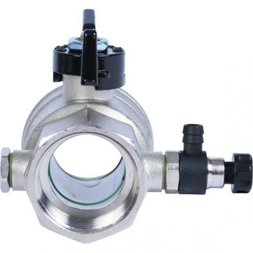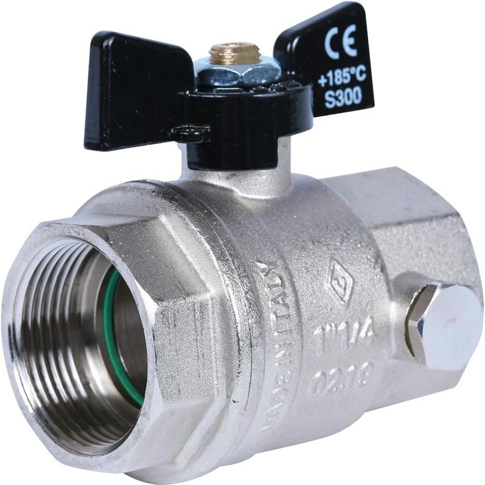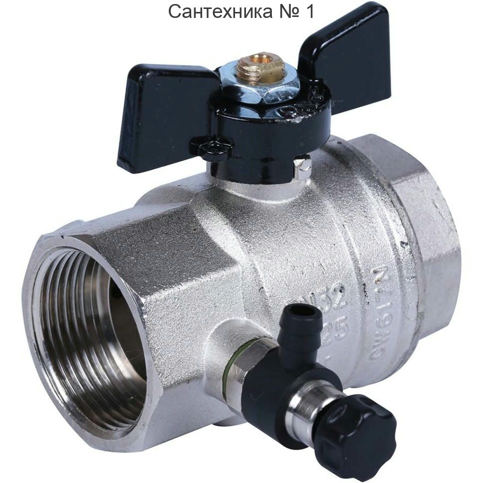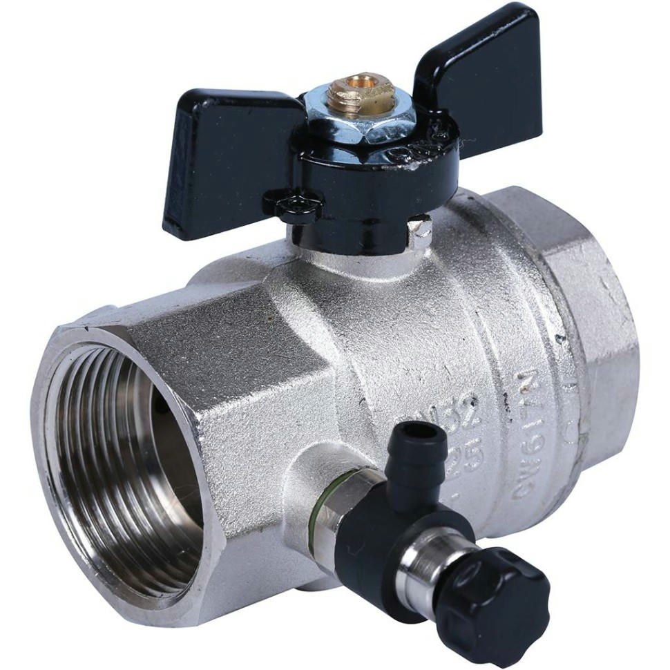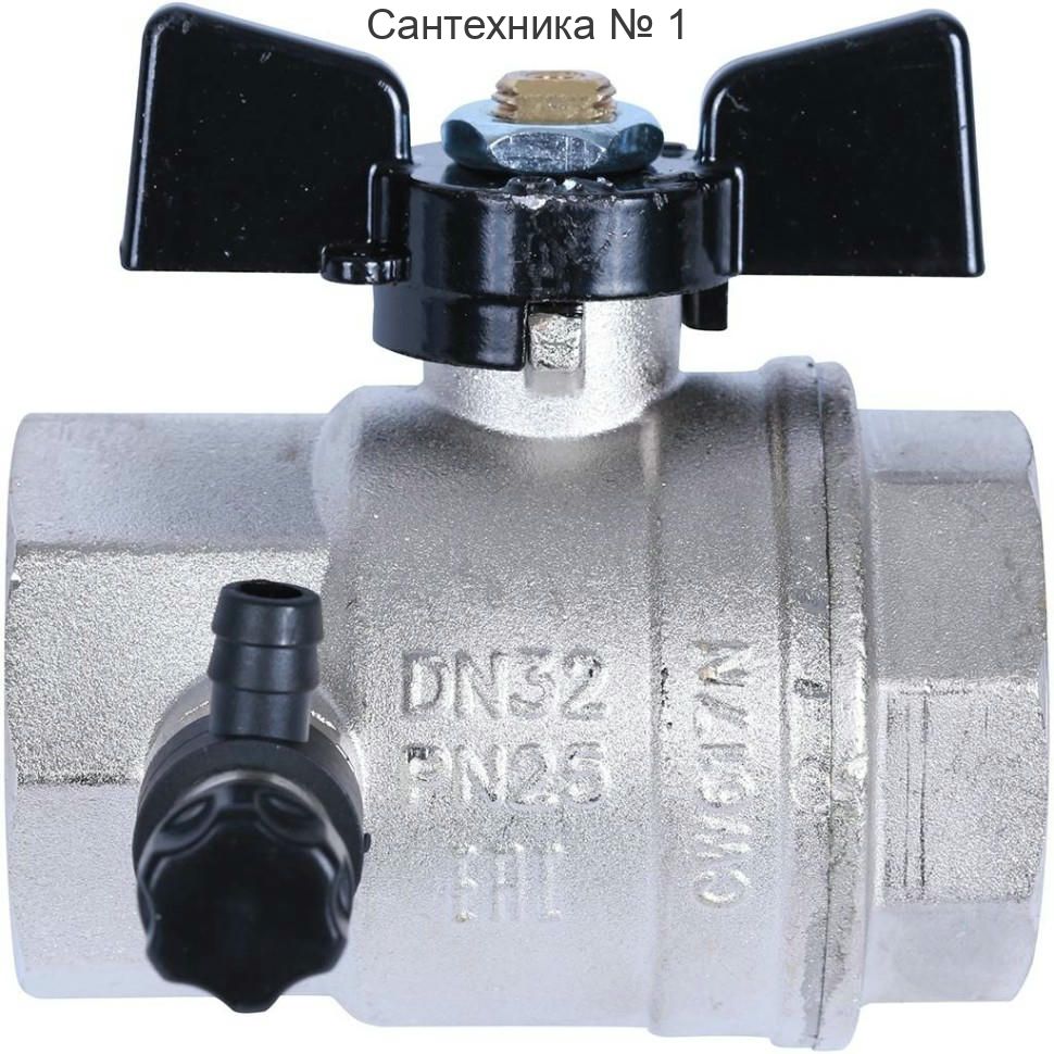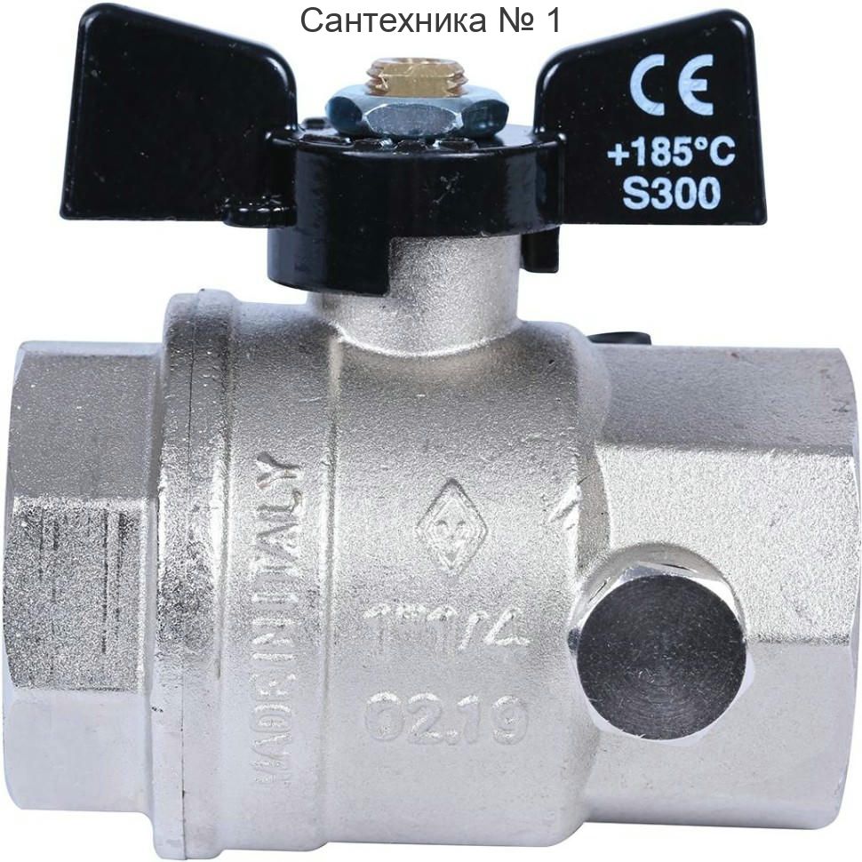 Кран шаровой ВВ 1 1/4" с заглушкой 1/4" и дренажным вентилем, бабочка OREGON серия 332 полный проход Bugatti