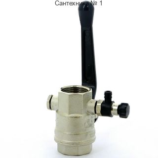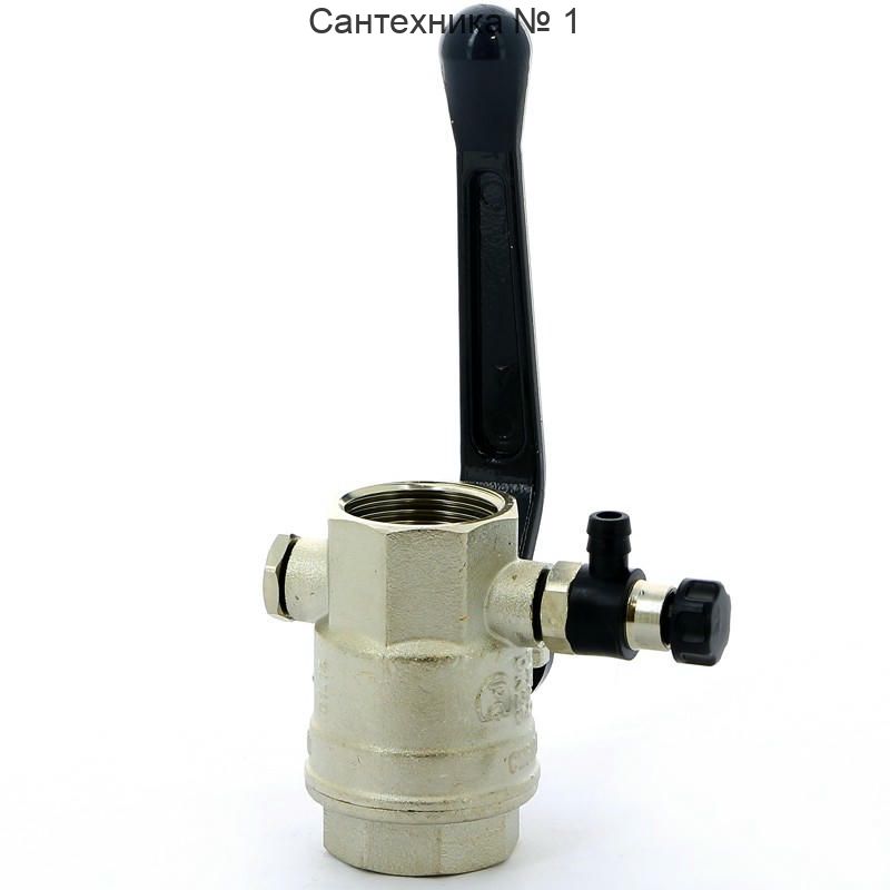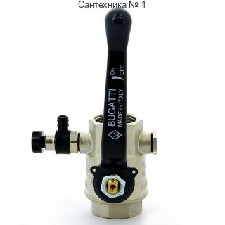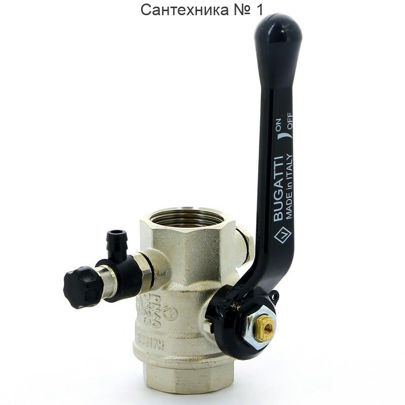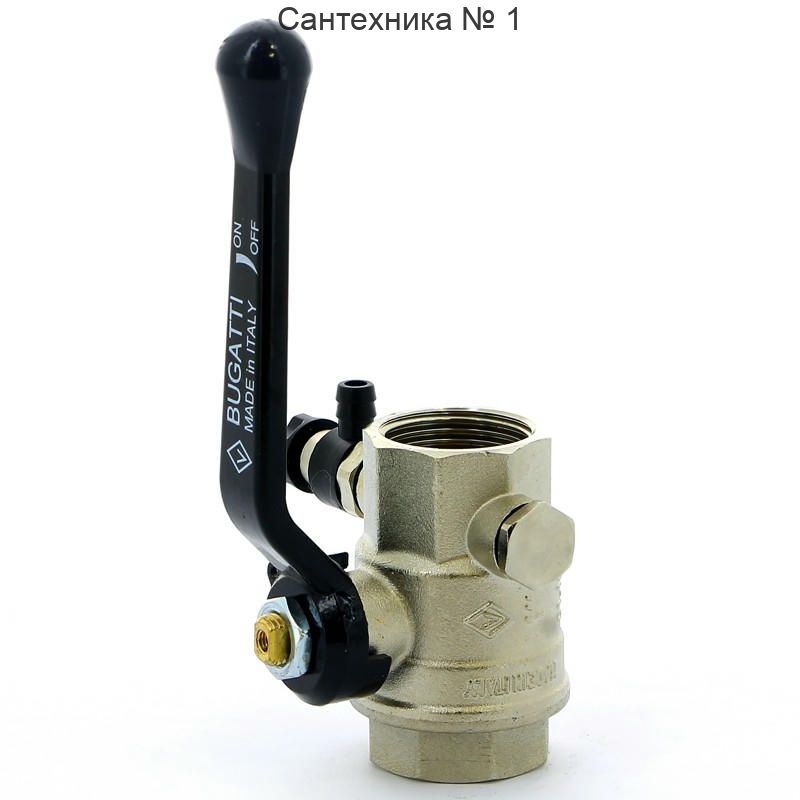 Кран шаровой ВВ 1" с заглушкой 1/4" и дренажным вентилем, ручка OREGON серия 330 полный проход Bugatti