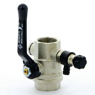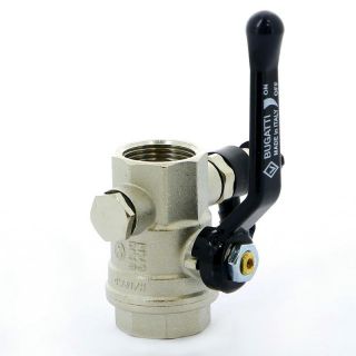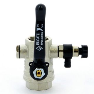 Кран шаровой ВВ 3/4 с заглушкой 1/4" и дренажным вентилем, ручка OREGON серия 330 полный проход Bugatti