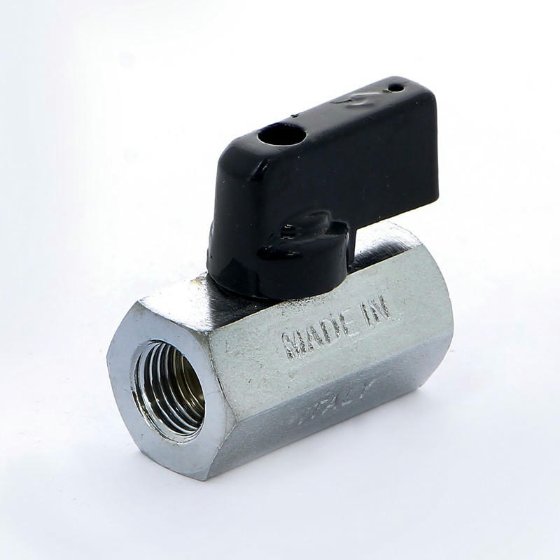 Кран шаровый мини применяется для быстрого и многократного перекрытия потока в системах водоснабжения, в установках сжатого воздуха и для слива резервуаров. Относится к запорной арматуре и не предназначен для регулирования потока. Шаровые краны Kansas выполнены из горячепрессованной никелированной латуни CW617N. Шар выполняется из хромированной латуни, уплотнение ? тефлон, шток ? латунь.