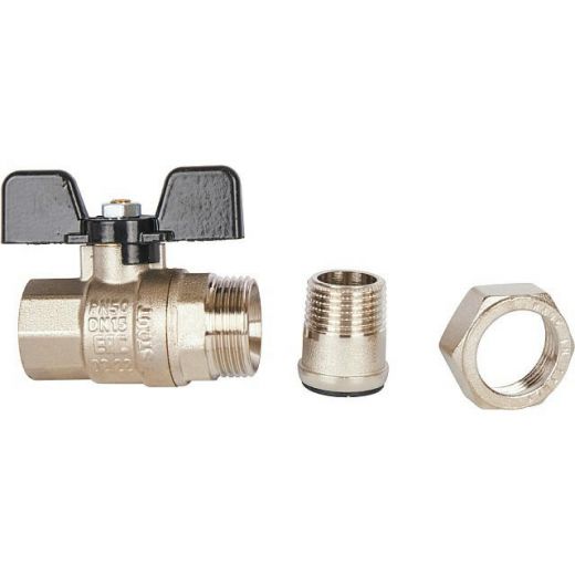 Оцените товар «Кран шаровой полнопроходной с американкой ВР/НР 1/2, ручка бабочка STOUT»