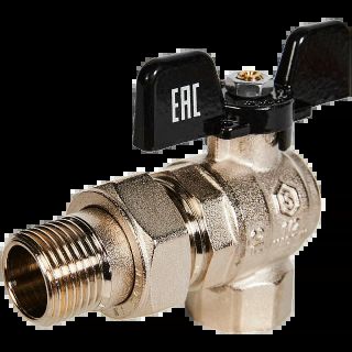 Кран шаровой полнопроходной угловой с американкой ВР/НР 1/2, бабочка STOUT
