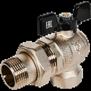 Кран шаровой полнопроходной угловой с американкой ВР/НР 1, бабочка STOUT