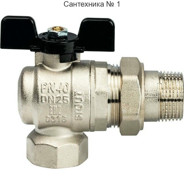 Кран шаровой полнопроходной угловой с американкой ВР/НР 1, ручка бабочка STOUT