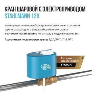 Кран шаровой с электроприводом Stahlmann 3/4" F 12В