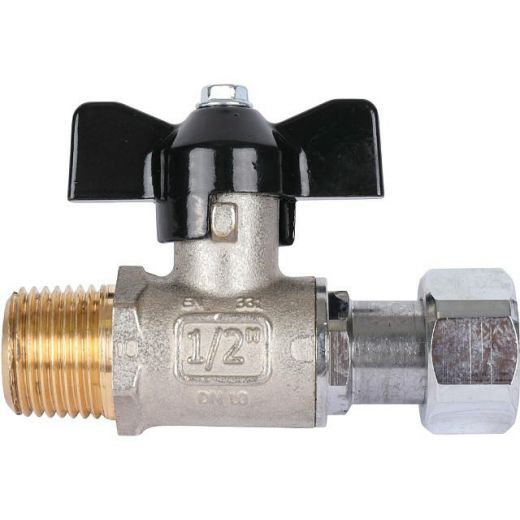 Оцените товар «Кран шаровой с накидной гайкой НР 1/2х1/2, ручка бабочка STOUT»