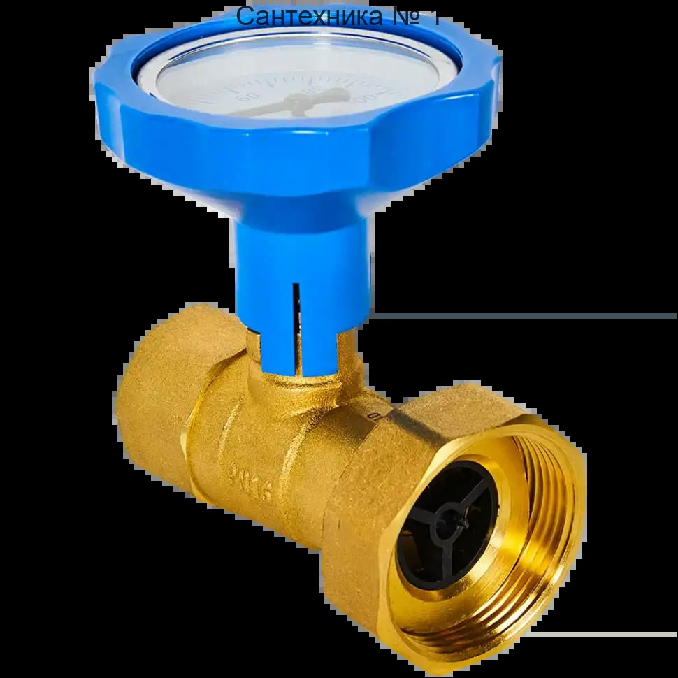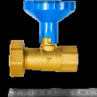 Кран шаровой с накидной гайкой ВР 1" для подключения насоса ВР 1 1/2", синяя ручка ROMMER