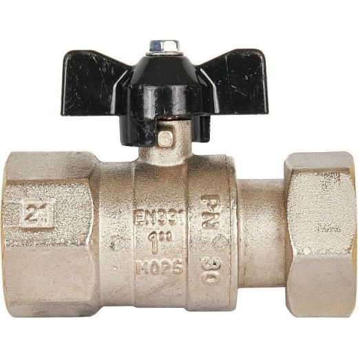 Оцените товар «Кран шаровой с накидной гайкой ВР 1х1, ручка бабочка STOUT»