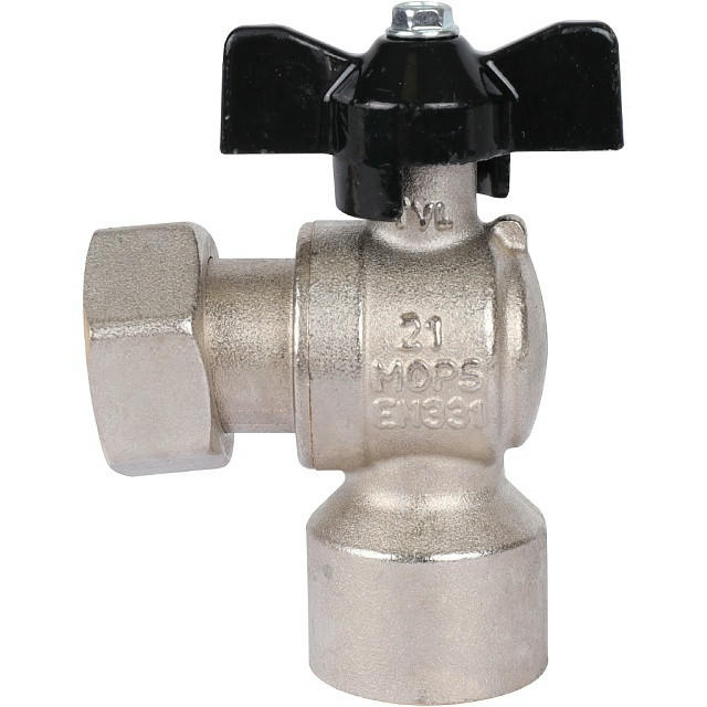 Оцените товар «Кран шаровой с накидной гайкой угловой ВР 3/4х3/4, ручка бабочка STOUT»