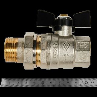 Кран шаровой с разъемным соединением НВ 1" бабочка OREGON серия 322 полный проход Bugatti