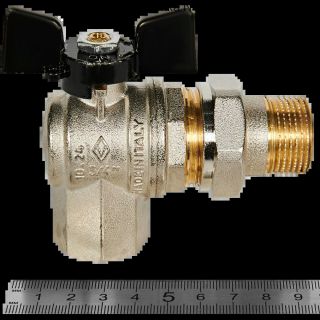 Кран шаровой с разъемным соединением угловой НВ 3/4 бабочка OREGON серия 594 полный проход Bugatti