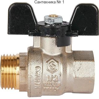 Шаровой кран изготовлен из латуни марки CW617N. Уплотнение штока выполнено 2 кольцами: материал FKP (Фторопласт) и NBR (Нитрил-каучук).