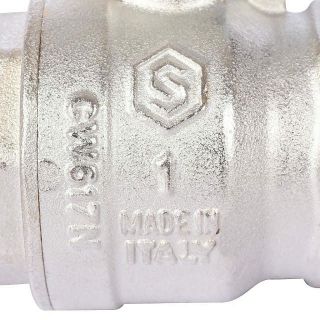 Шаровой кран изготовлен из латуни марки CW617N. Уплотнение штока выполнено 2 кольцами: материал FKP (Фторопласт) и NBR (Нитрил-каучук).