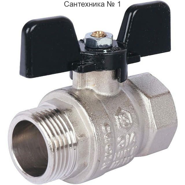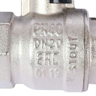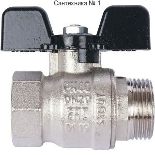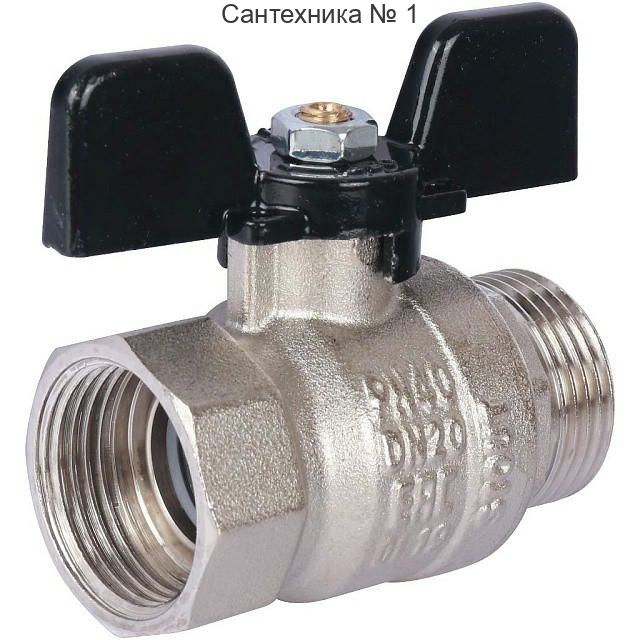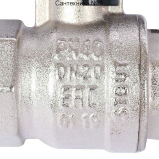 Шаровой кран изготовлен из латуни марки CW617N. Уплотнение штока выполнено 2 кольцами: материал FKP (Фторопласт) и NBR (Нитрил-каучук).