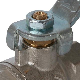 Шаровой кран изготовлен из латуни марки CW617N. Уплотнение штока выполнено 2 кольцами: материал FKP (Фторопласт) и NBR (Нитрил-каучук).